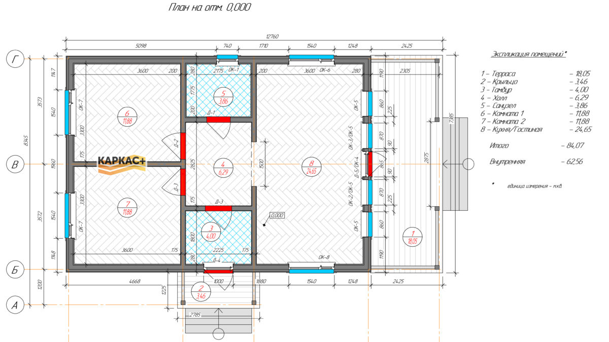 Строительство каркасного дома 8х6 "Теремок-1" под ключ