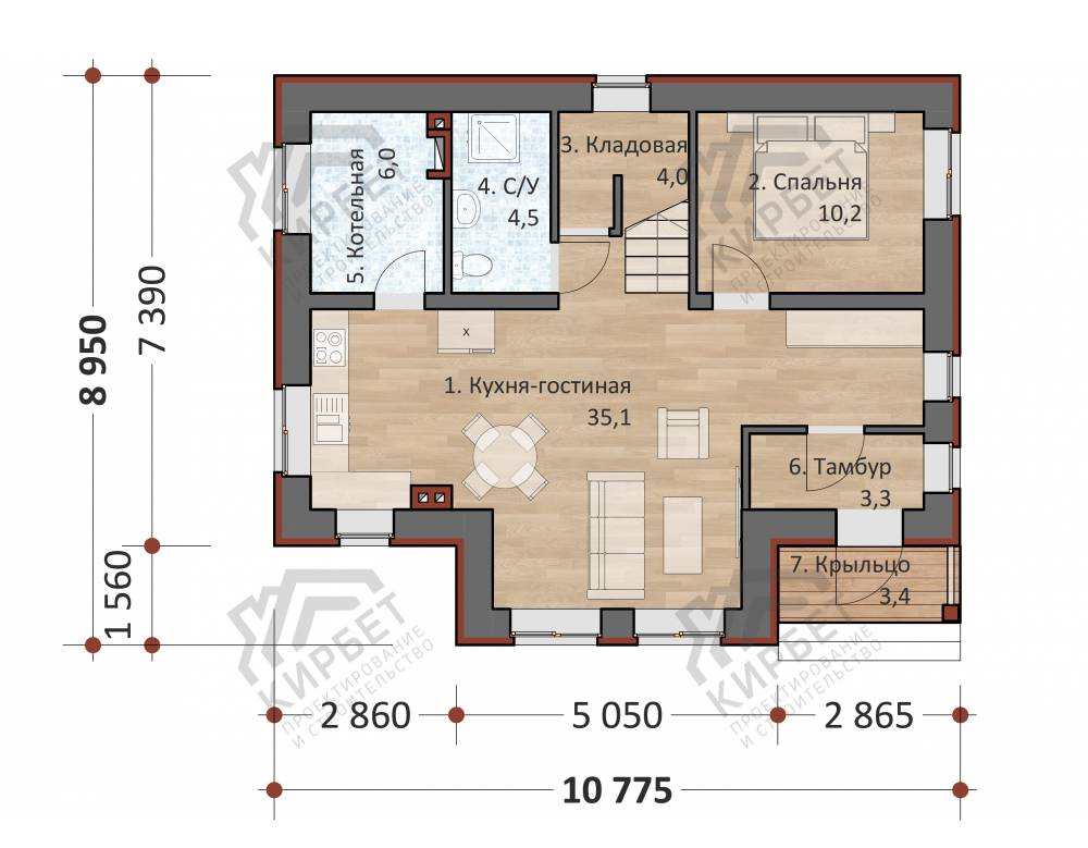 Проект одноэтажного дома "Карелия" из бруса