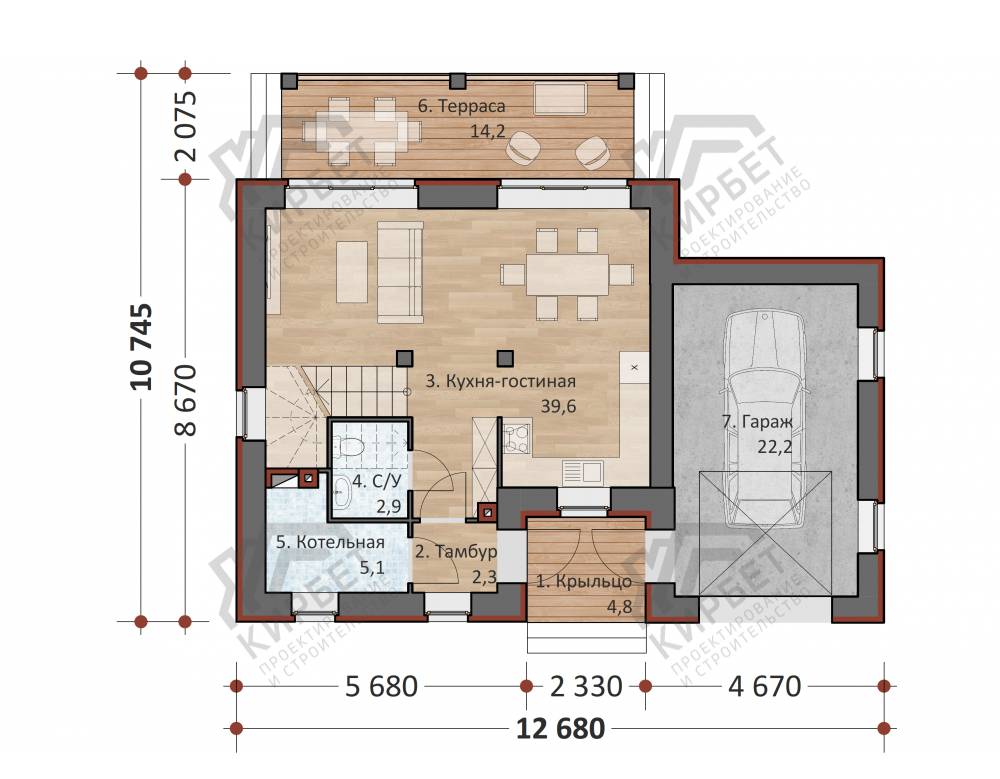 Проект одноэтажного каркасного дома "Ласточка-1"