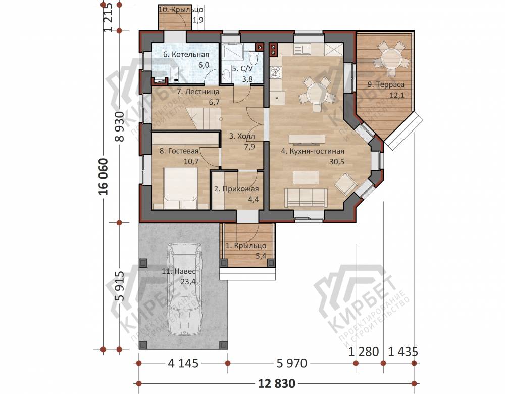 Проект одноэтажного коттеджа "Жасмин" из газобетона
