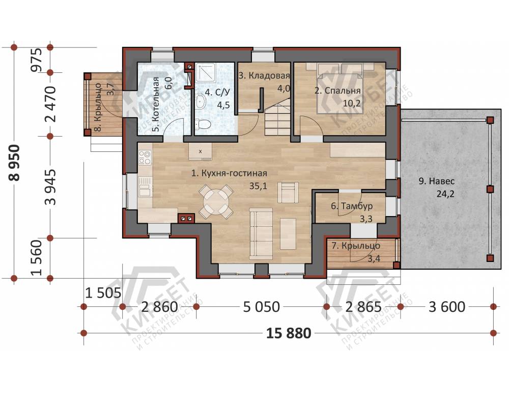 Проект дома из газоблоков 16х9 ГББ-162: цена 6855000 руб.