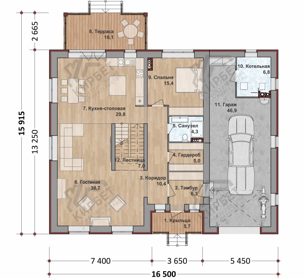 Проект одноэтажного дома "Прибрежный" из бруса