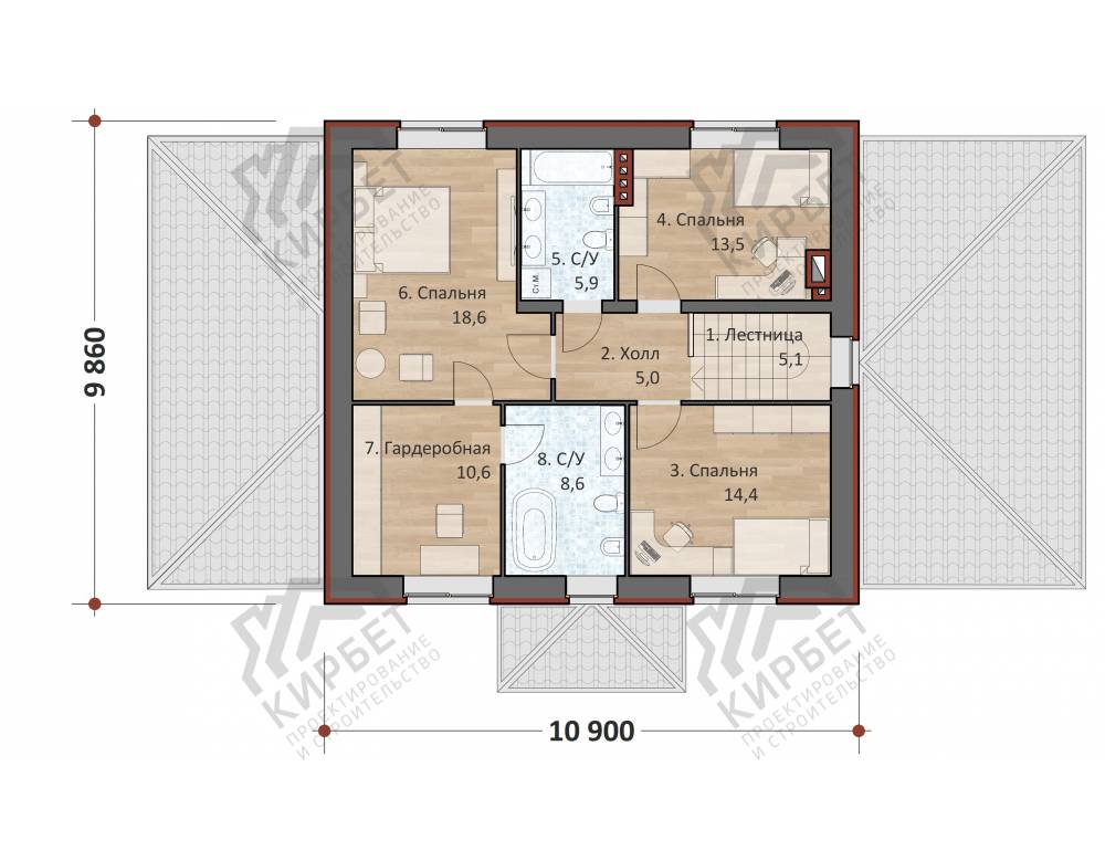 Проект двухэтажного дома "Уголок-М4" из бруса