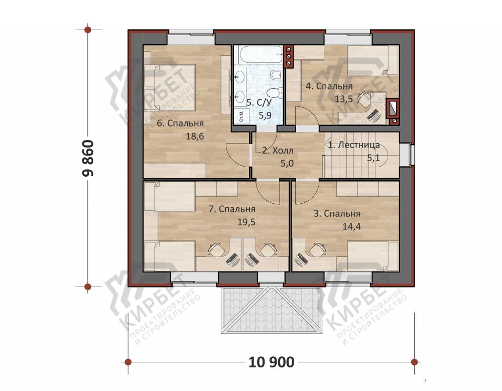 Проект двухэтажного дома "Уголок-М8" из бруса