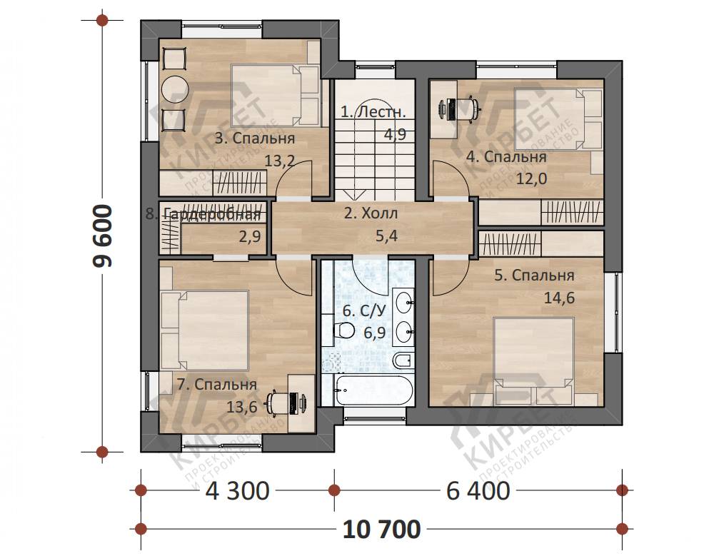6 спальн. · 2 этаж