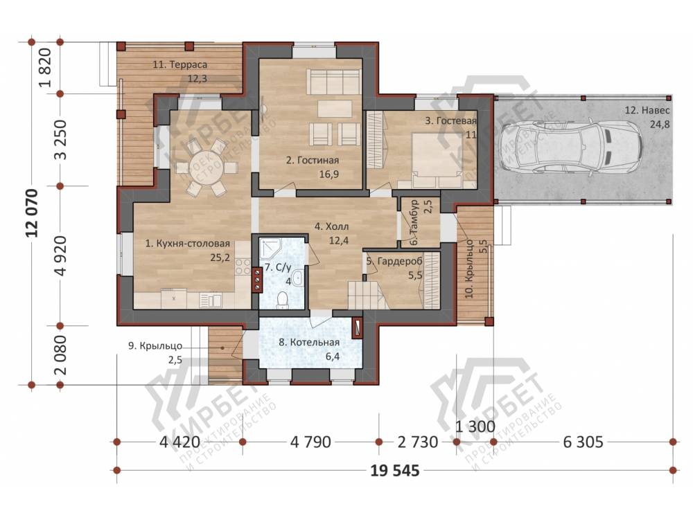 Проект одноэтажного дома "Ясень" из бруса