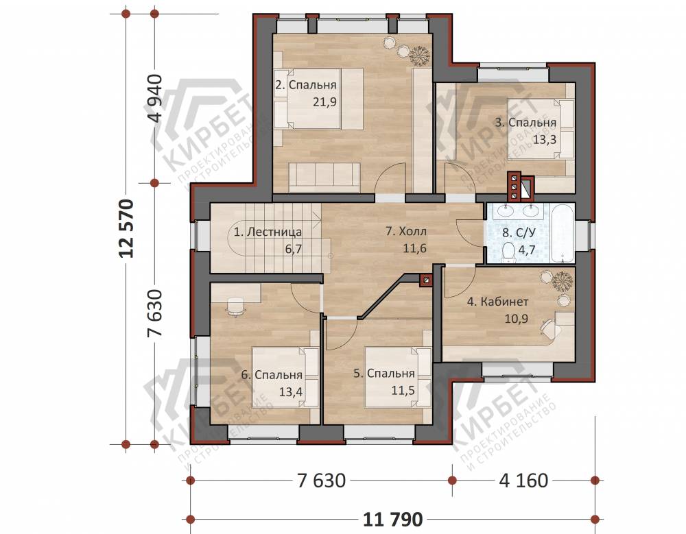 6 спальн. · 2 санузл. · 2 этаж