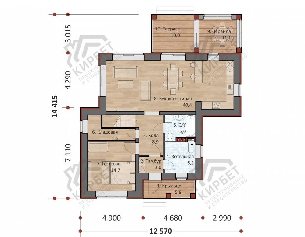 Проект одноэтажного коттеджа "Форэст" из бруса