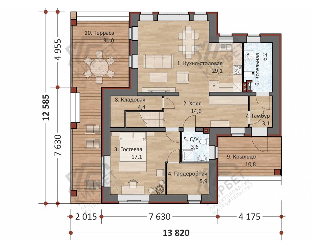 Проект одноэтажного дома "Кедр" из бруса