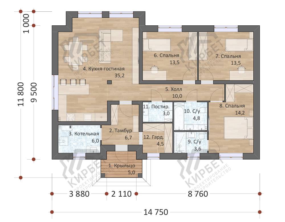 Проект одноэтажного дома "Пыжик" из бруса