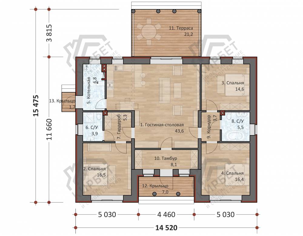 Проект дома из газоблоков 15х16 ГББ-154: цена 8455000 руб.