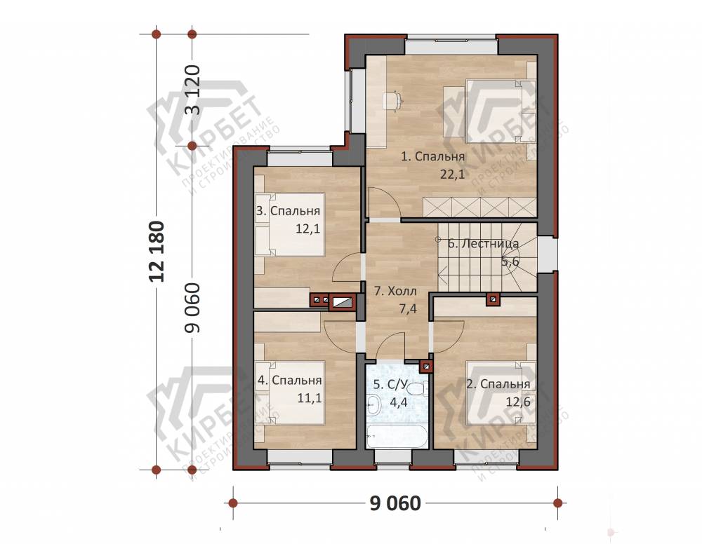5 спальн. · 3 санузл. · 2 этаж