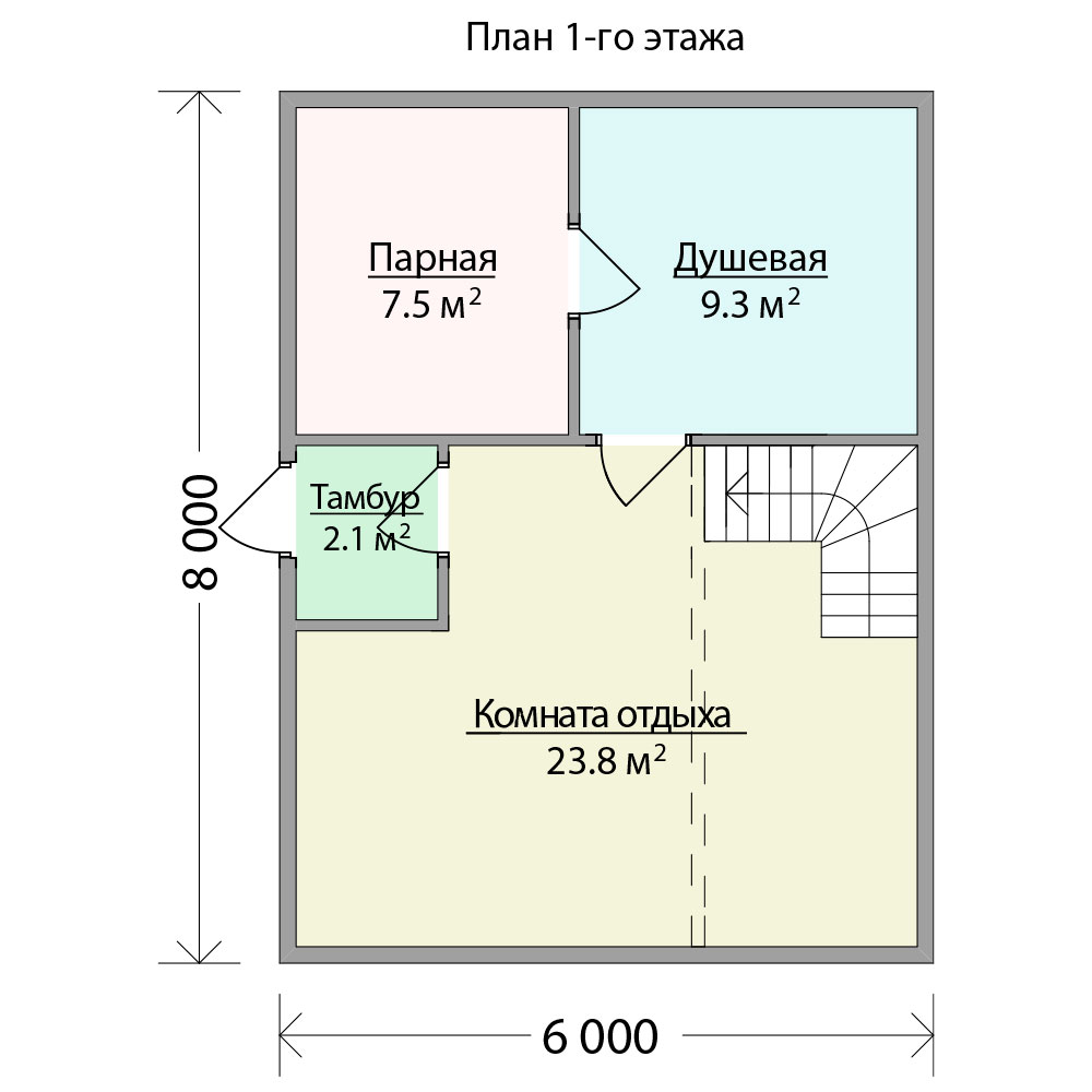 ᐉ Проект одноэтажного дома из газобетона площадью 46м2 с 2 спальнями Nest-S - Купить от застройщика «Домострой»