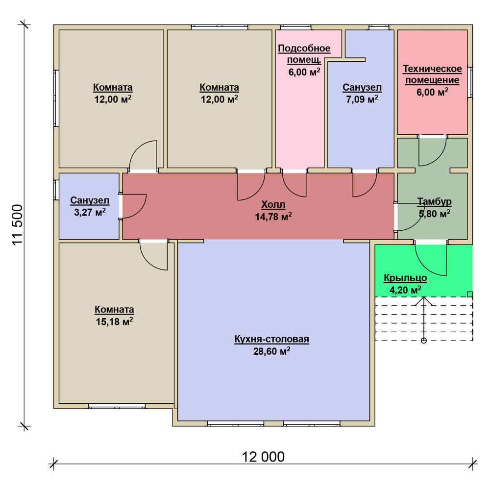 Проект одноэтажного дома "Пион" из бруса