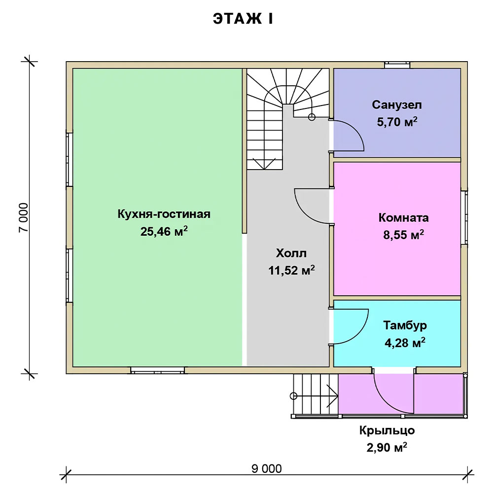 2 спальн. · 1 санузл. · 1 этаж
