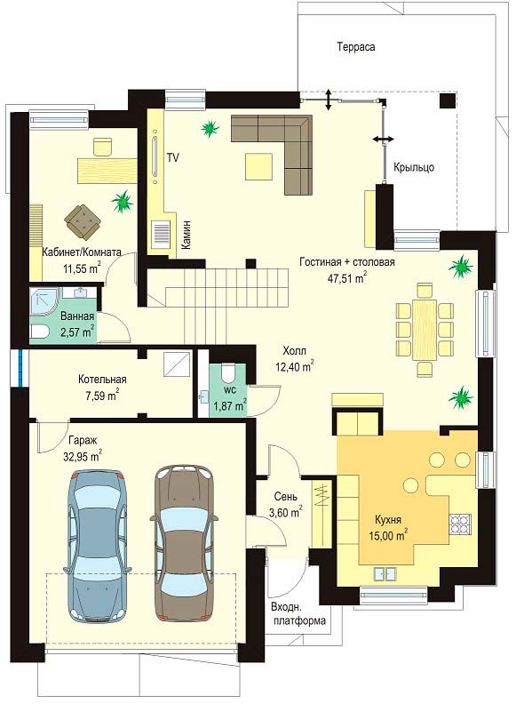 Двухэтажный дом с гаражом на две машины «Рейтон»