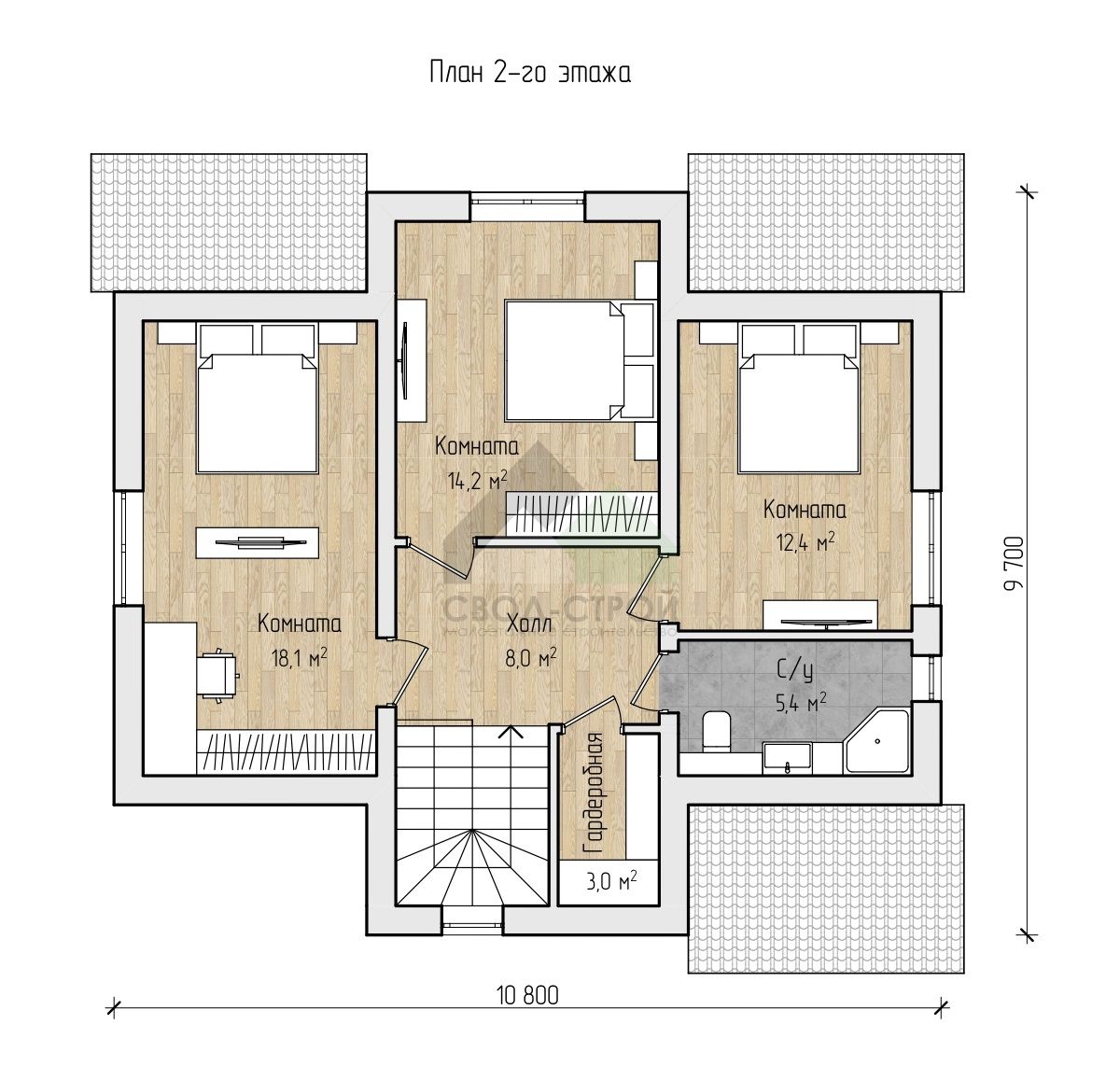 Проект двухэтажного каркасного дома Тетрис L под ключ от компании БАКО