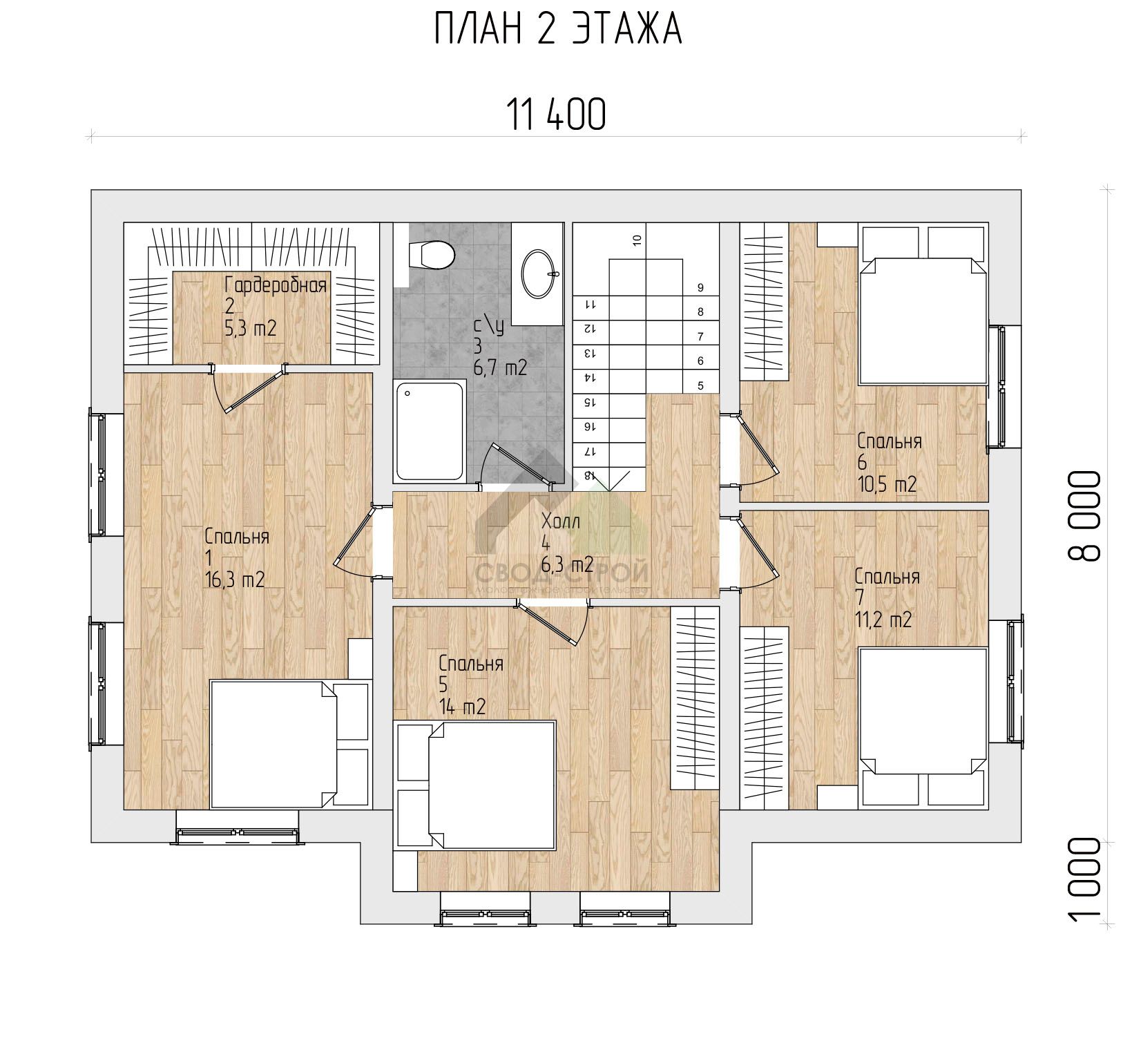 5 спальн. · 2 санузл. · 2 этаж