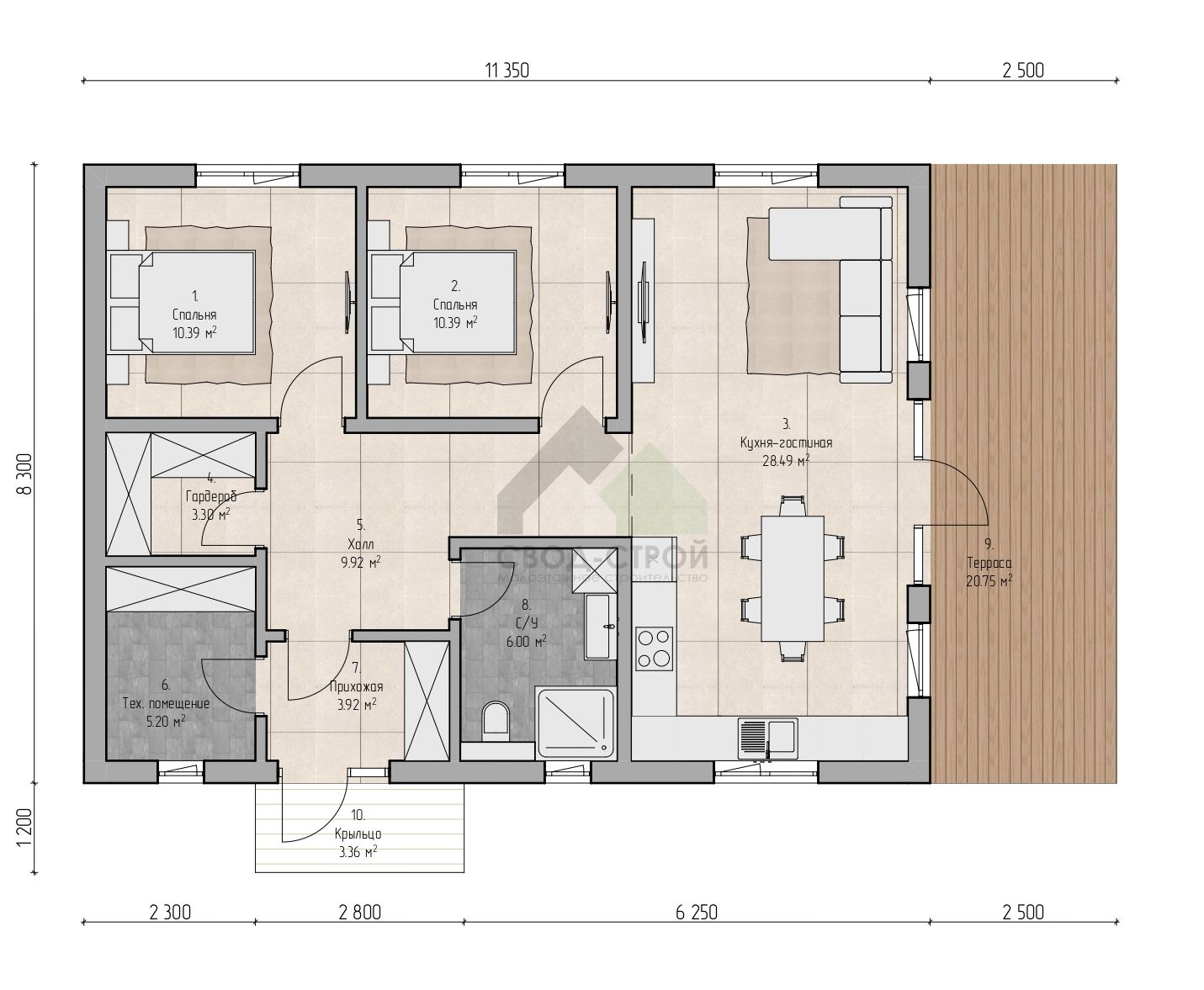 2 спальн. · 1 этаж