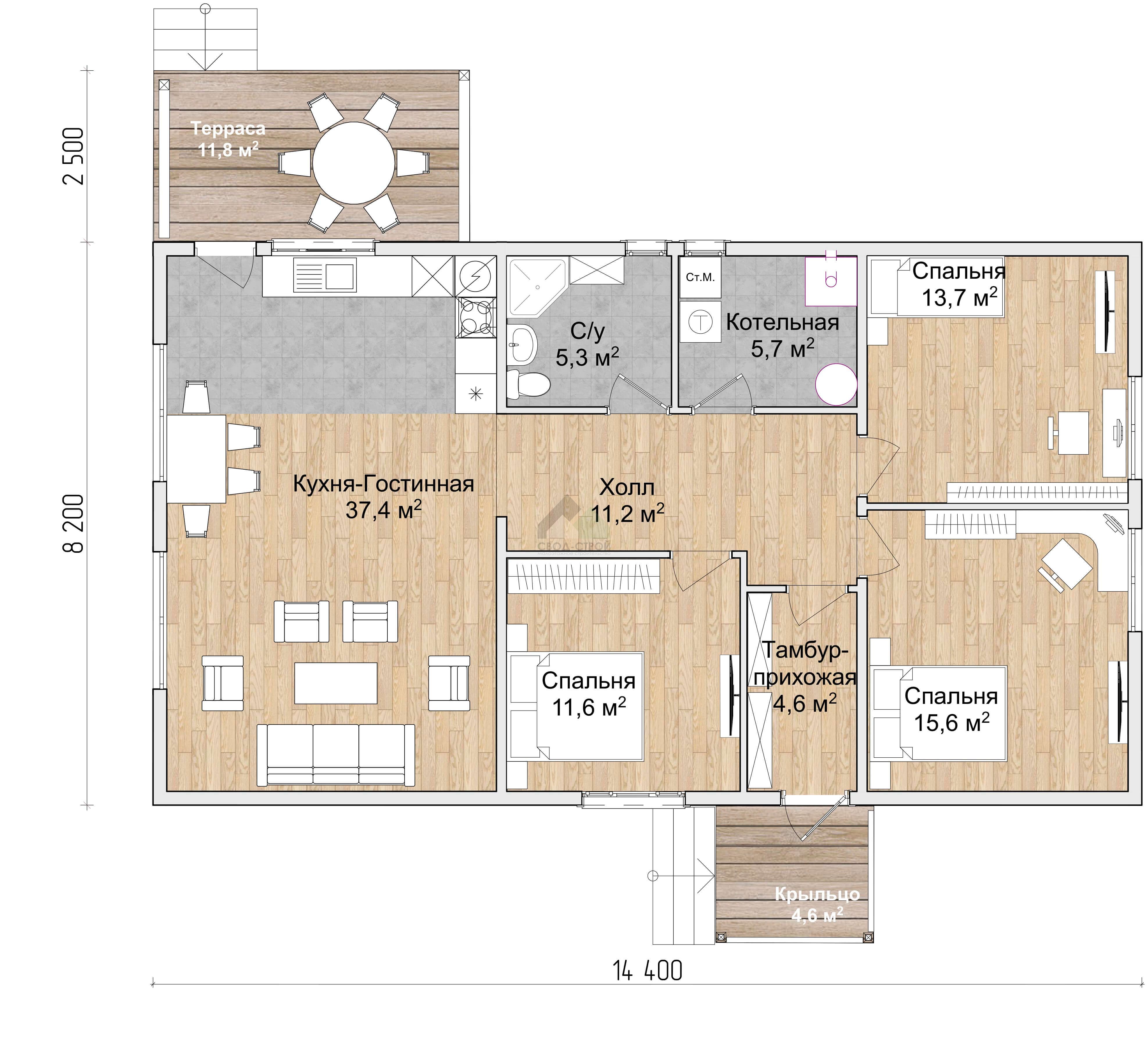 Дом из керамических блоков С-135 КЕ «Афродита»