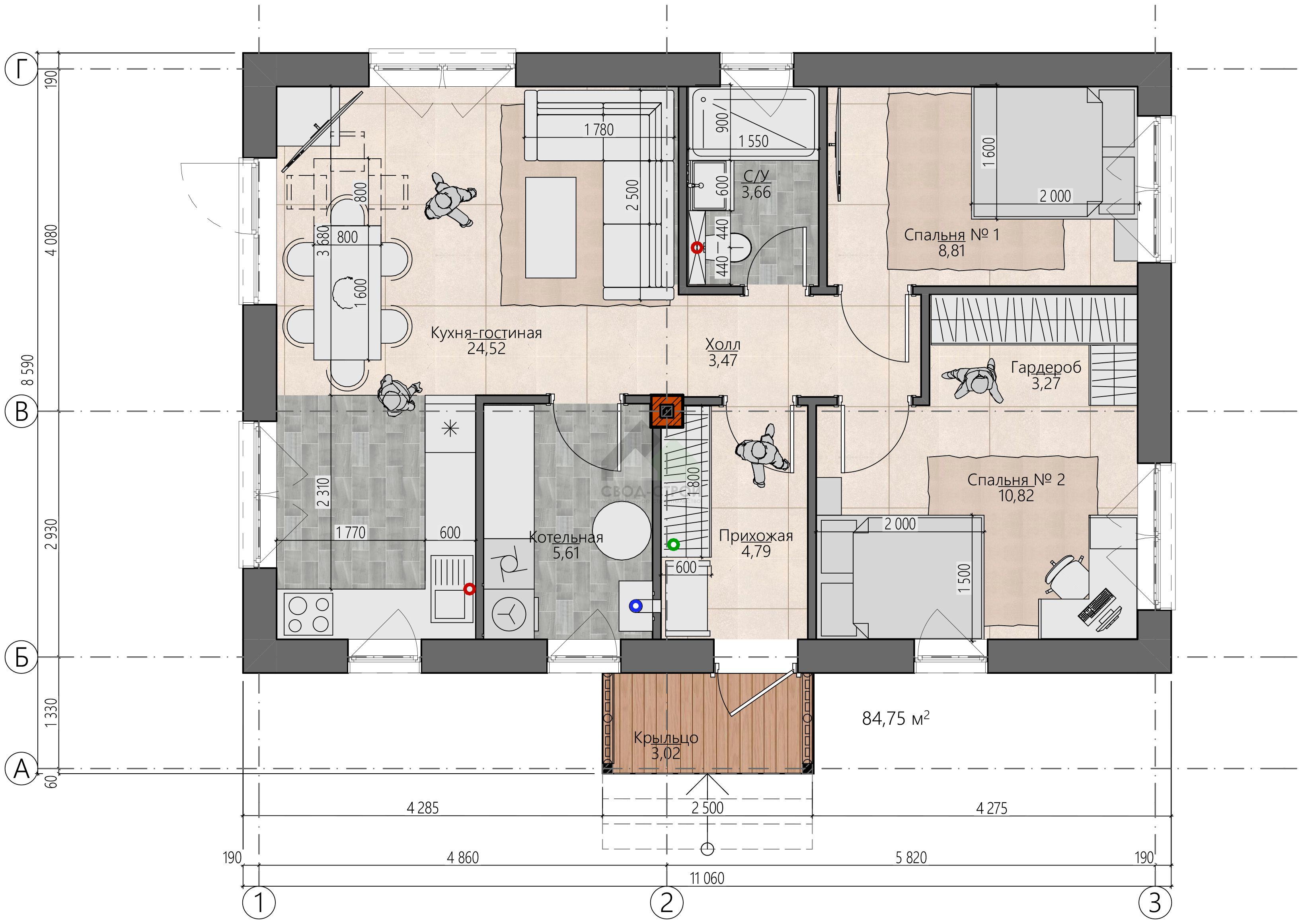 Кирпичный дом С-85 К «Вдохновение мини»