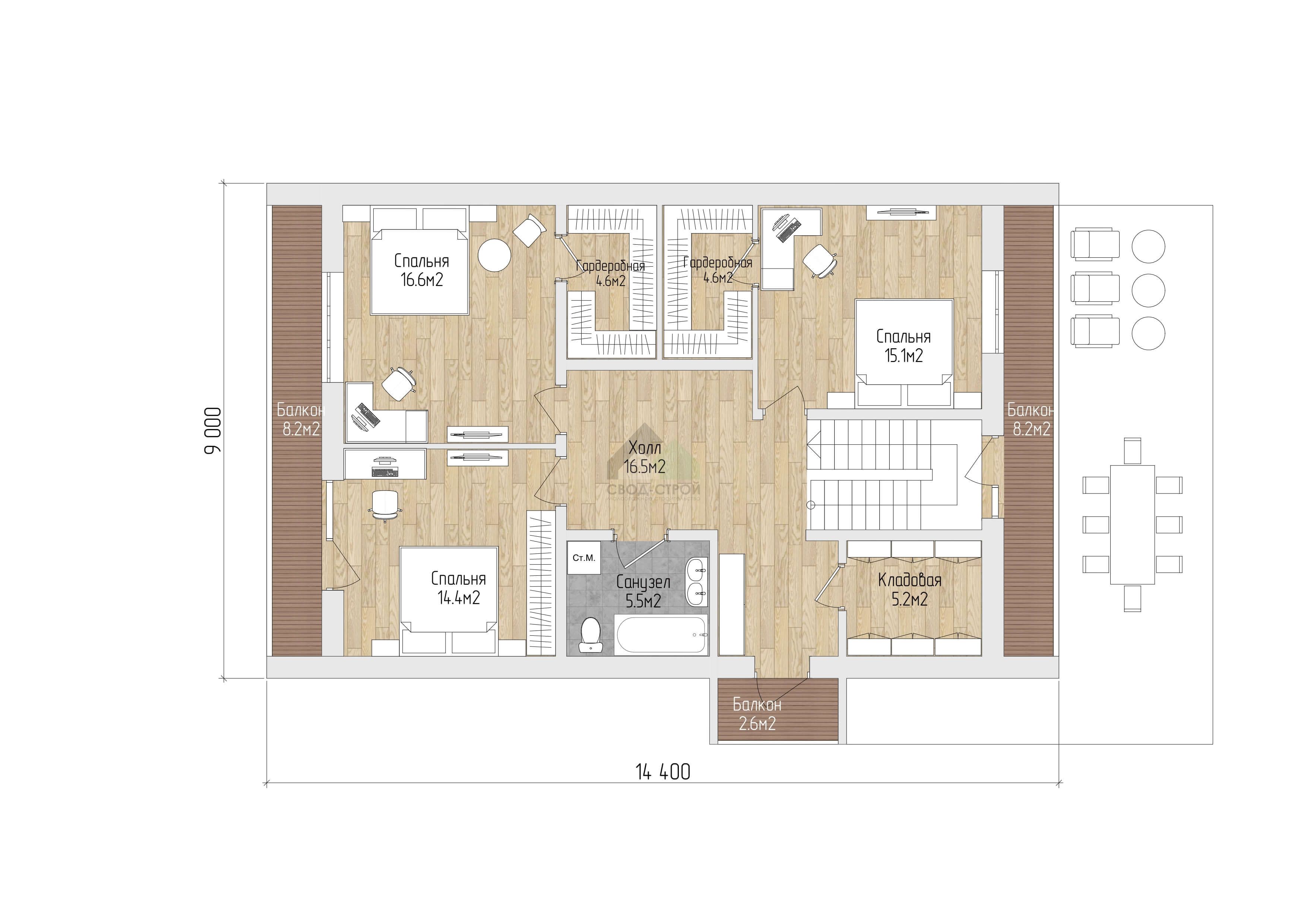 5 спальн. · 2 санузл. · 2 этаж