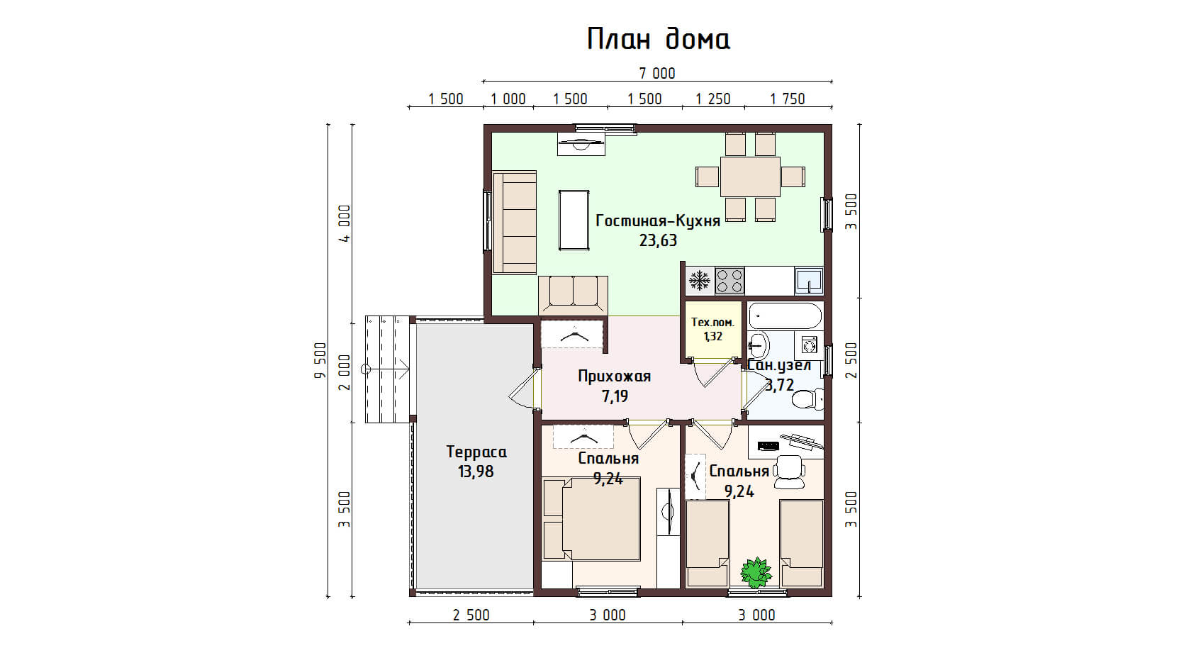 Строительство каркасного дома 9х5 "Рост" под ключ