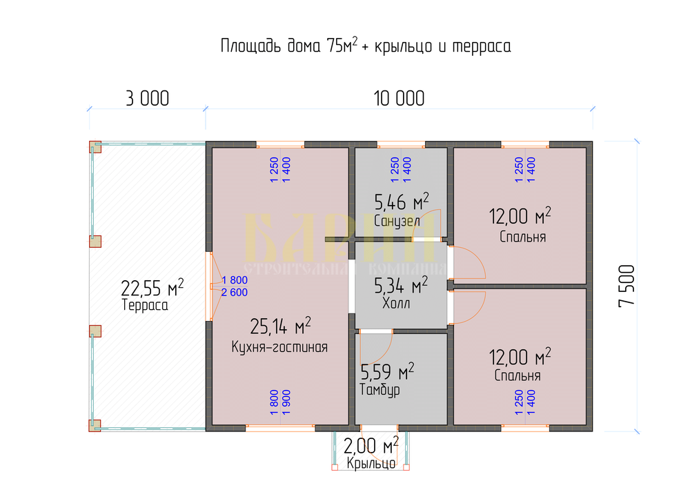 Проект одноэтажного каркасного дома "Марс"