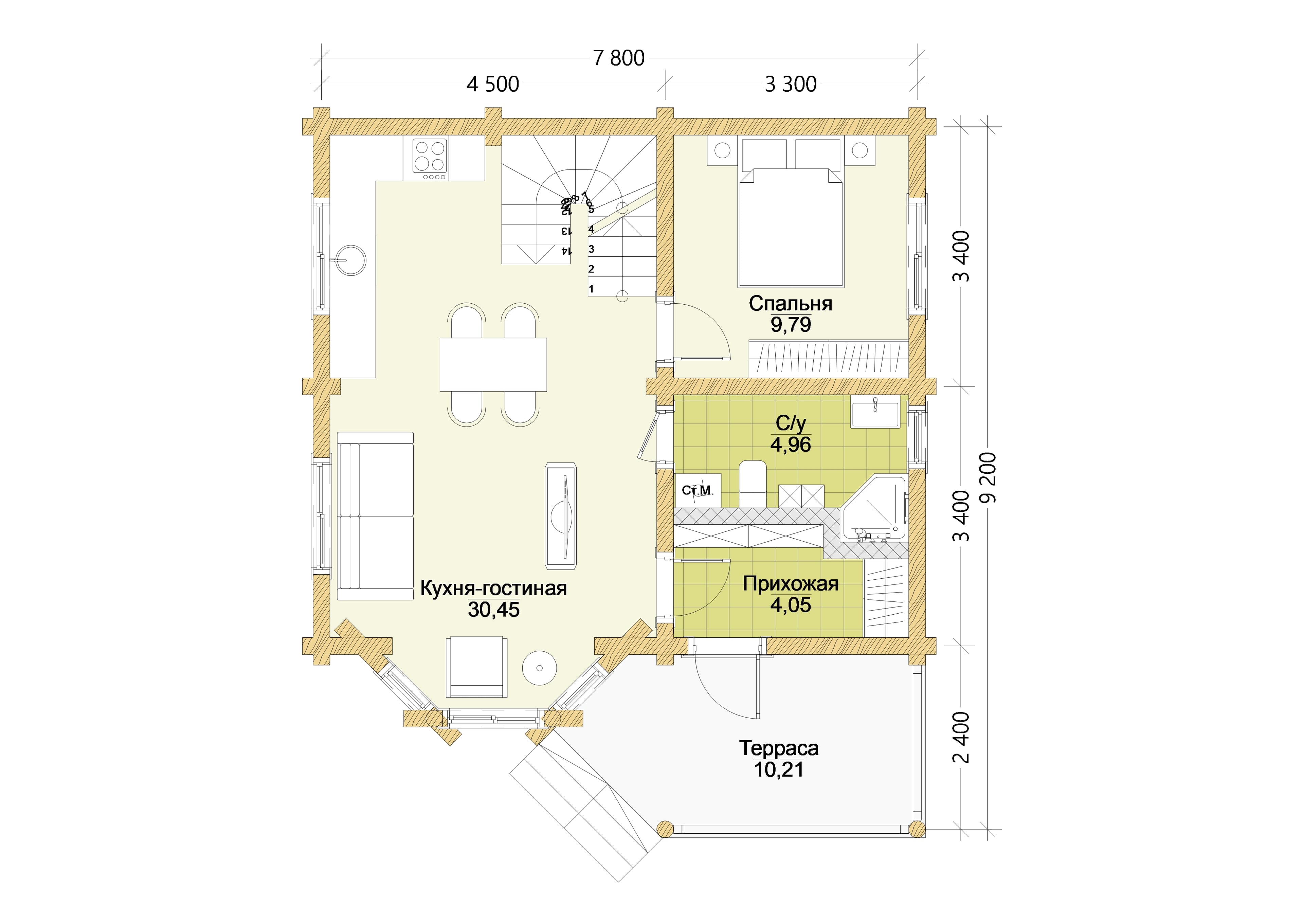 Проект одноэтажного дома "Таймень" из бруса