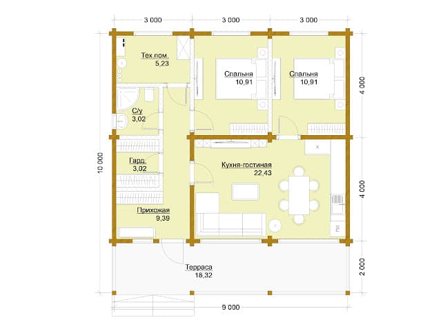 2 спальн. · 1 этаж