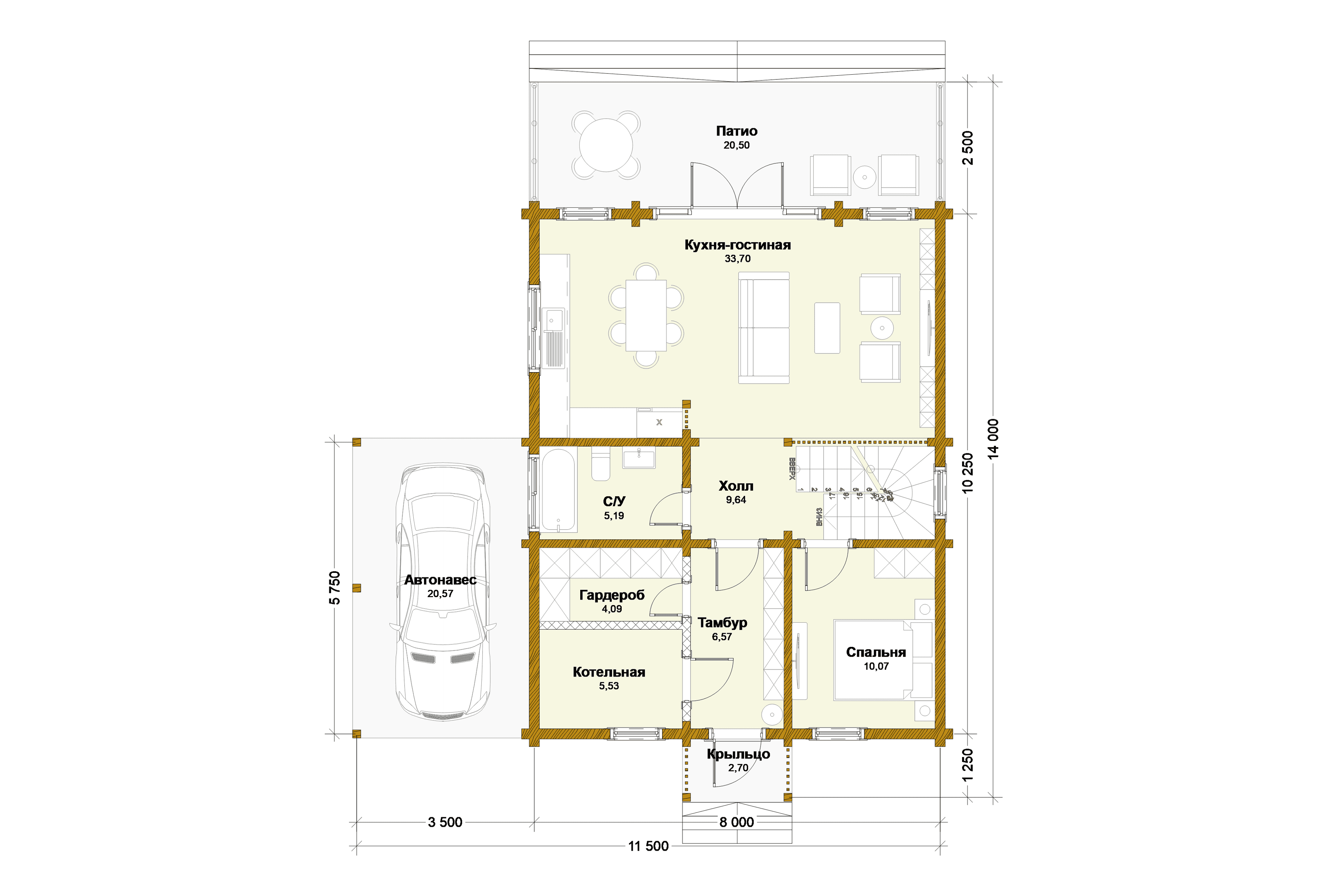 Проект двухэтажного дома "Уголок-М7" из бруса