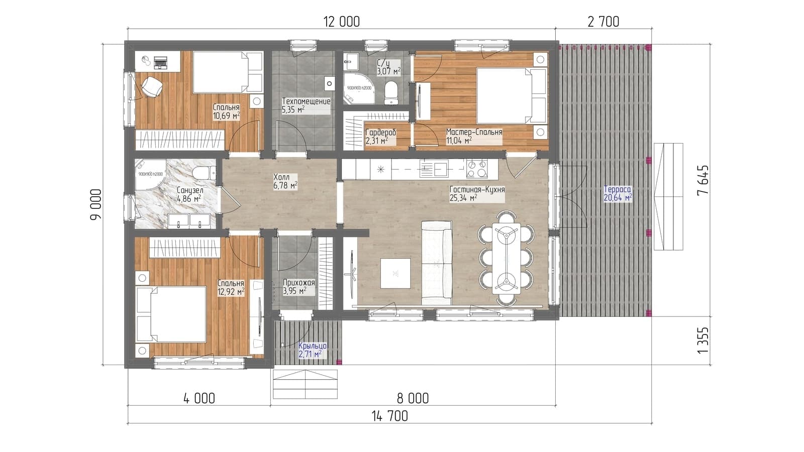 3 спальн. · 1 этаж