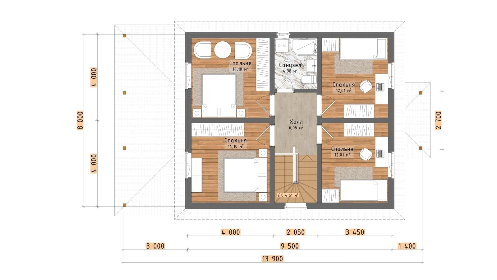 4 спальн. · 2 этаж