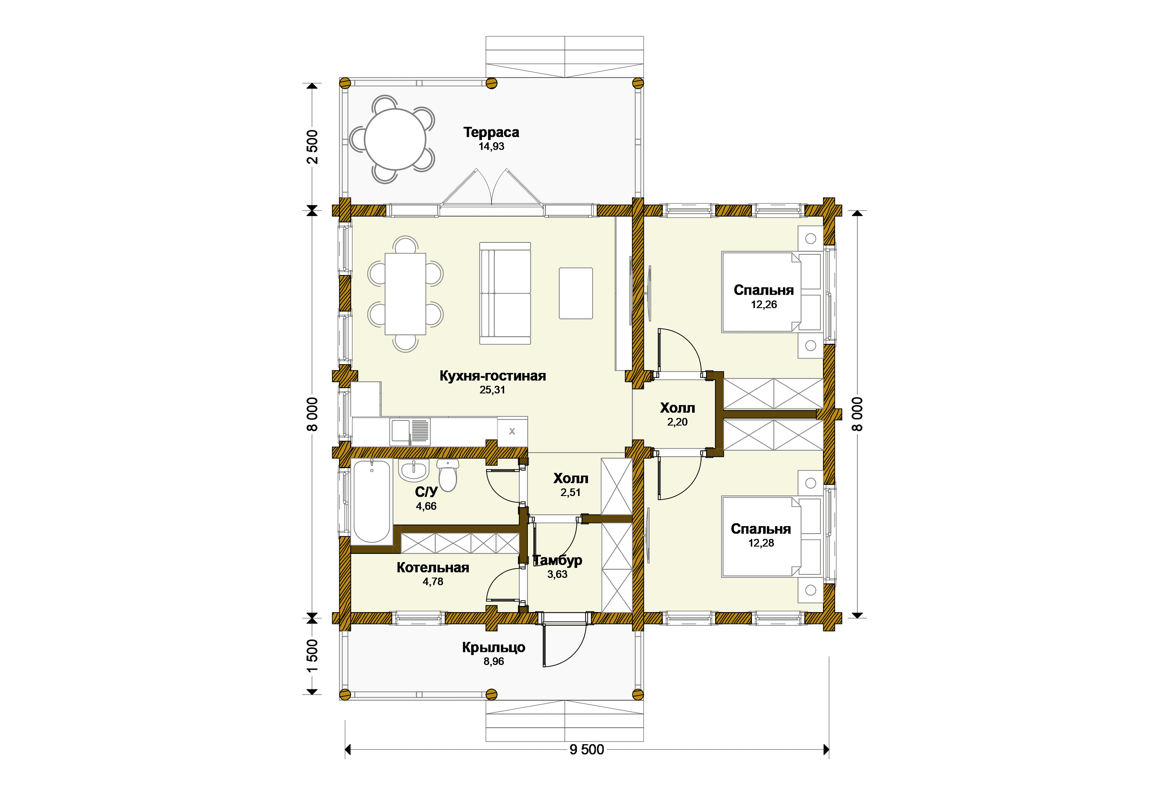 Одноэтажный дом из бревна «Воскресенск» | ЭкоТех