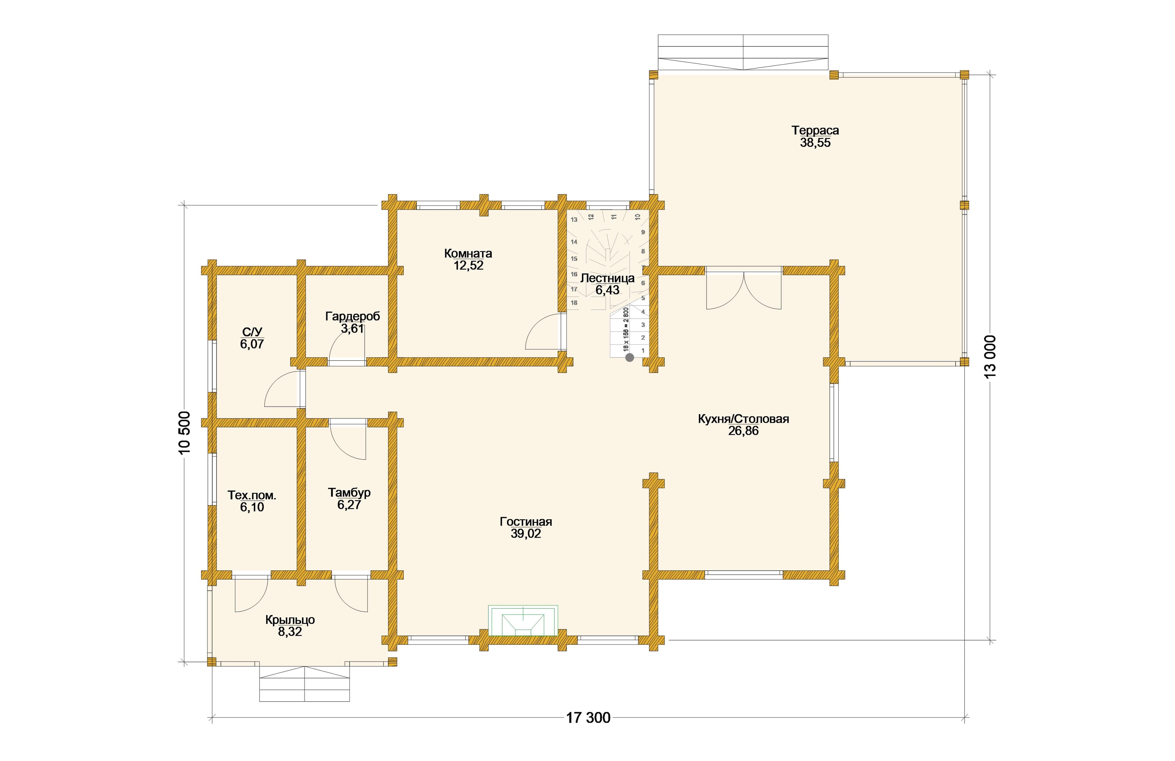 Проект одноэтажного дома "Аль Таяр" из бруса с пристройкой