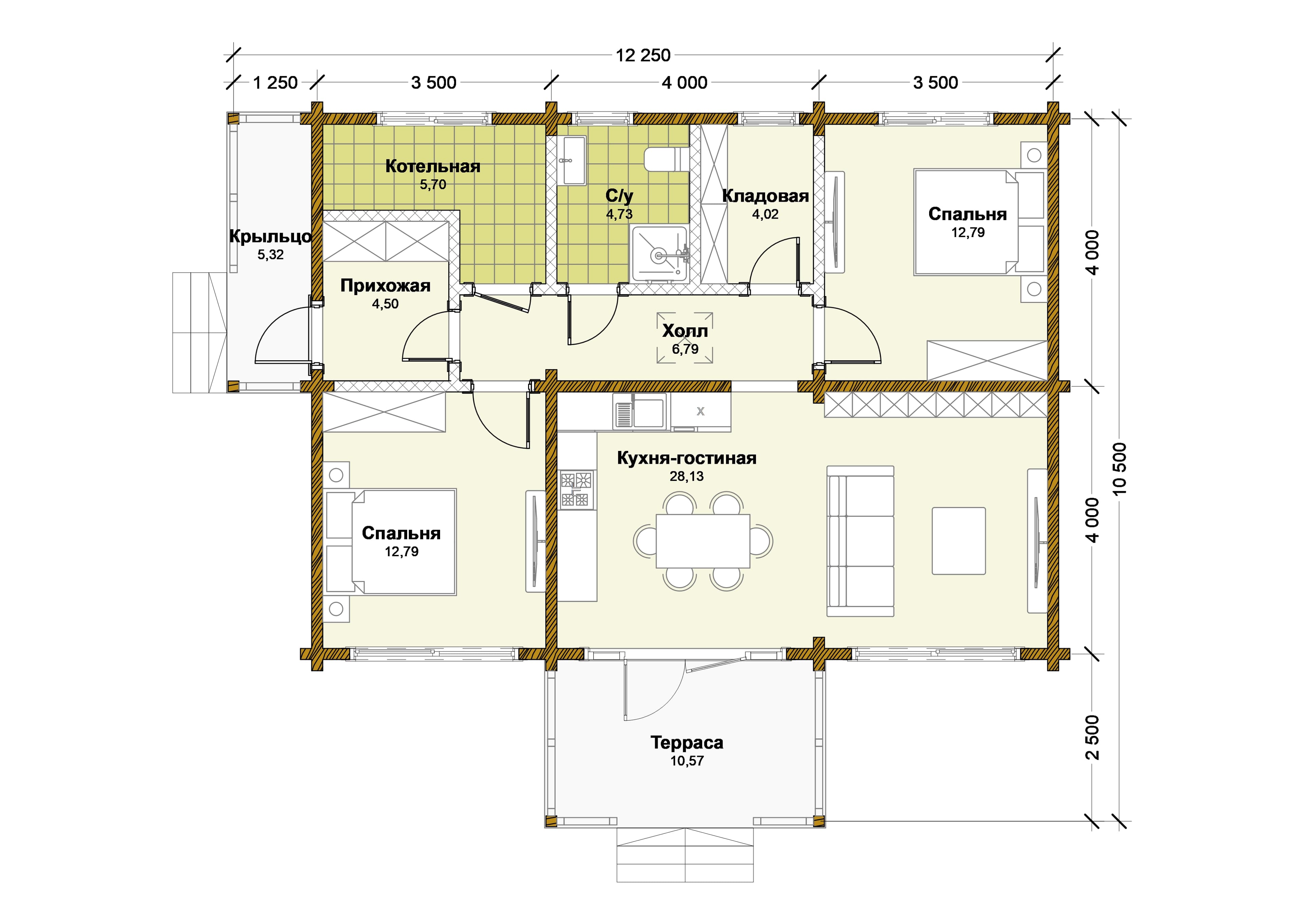 Проект одноэтажного дома "Скандик-3" из бруса
