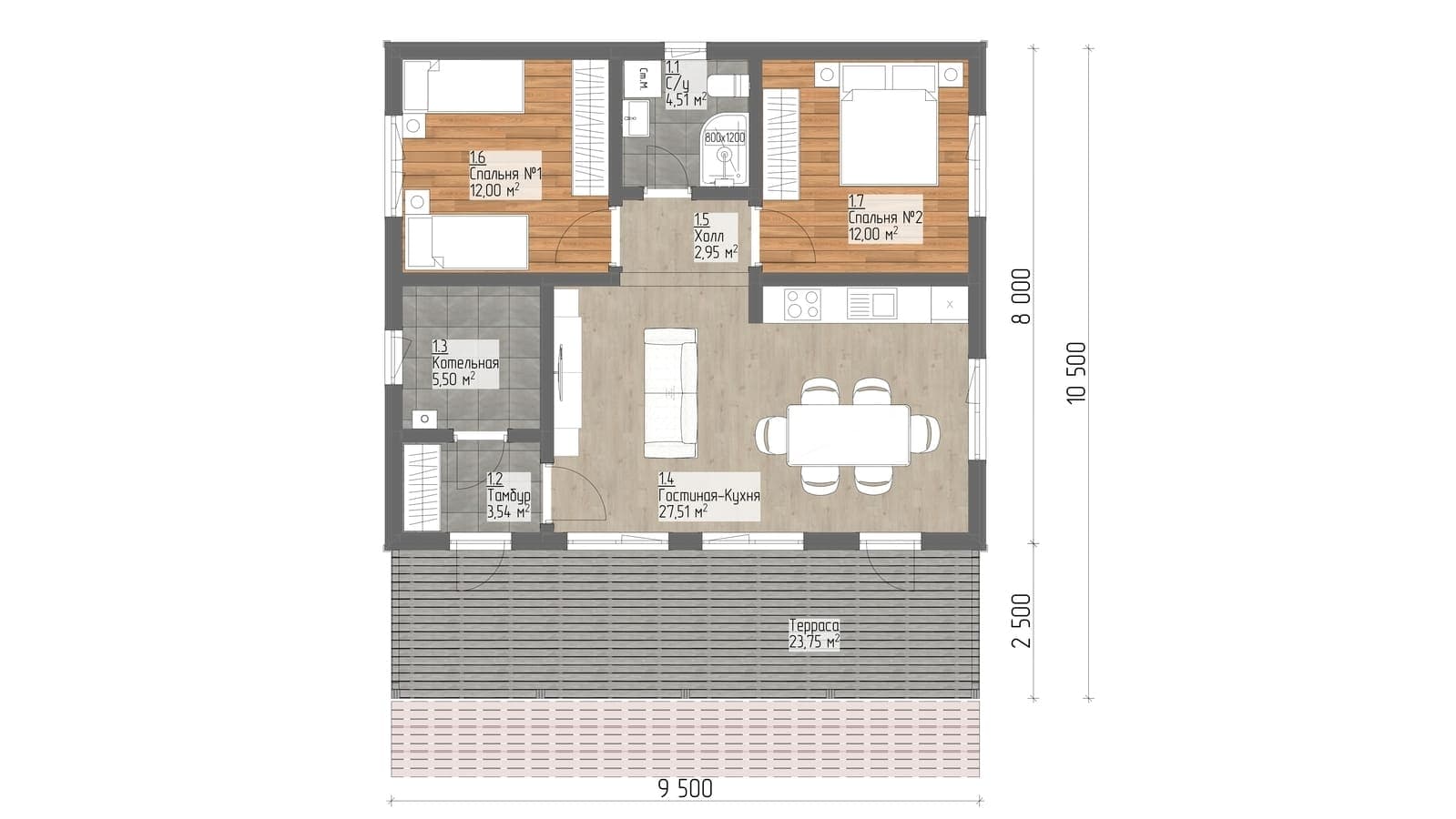 Каркасный дом 7x7.5 Проект "Бриллиант"