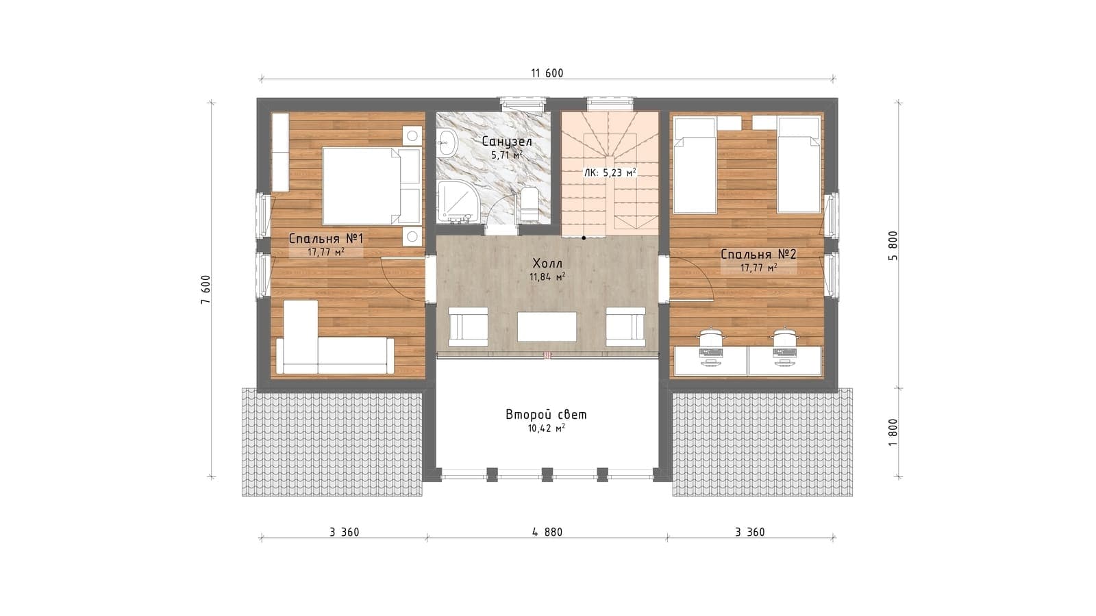 3 спальн. · 2 этаж