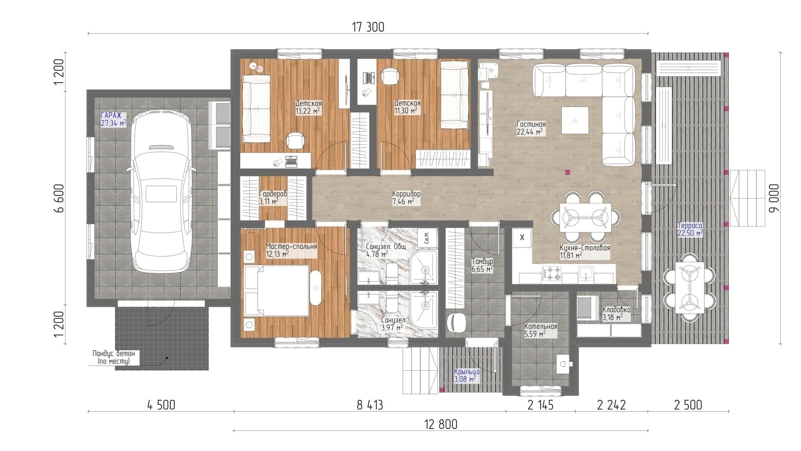 Дом из газобетонных блоков С-185 ГБ «Сиеста»