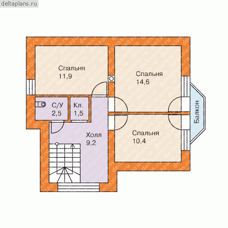 5 спальн. · 1 санузл. · 2 этаж