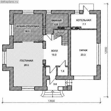 Проект двухэтажного дома "Уголок-М8" из бруса