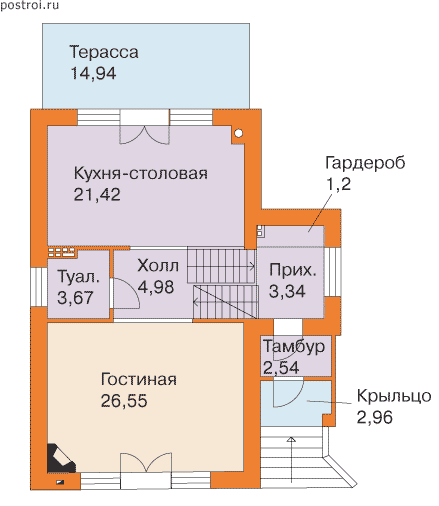 Проект одноэтажного коттеджа "Кантата" из бруса