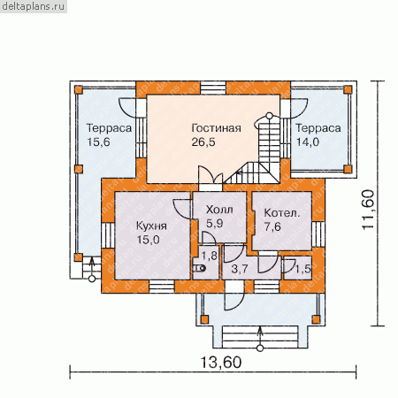 Проект одноэтажного коттеджа "Еловый" из газобетона