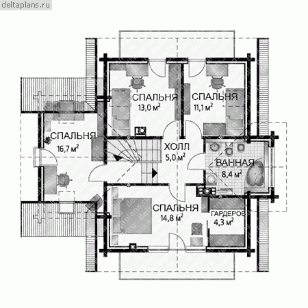 Проект двухэтажного дома "Уголок-М6" из бруса