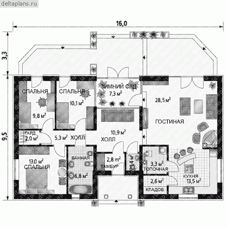 Проект одноэтажного дома "Рубин" из бруса