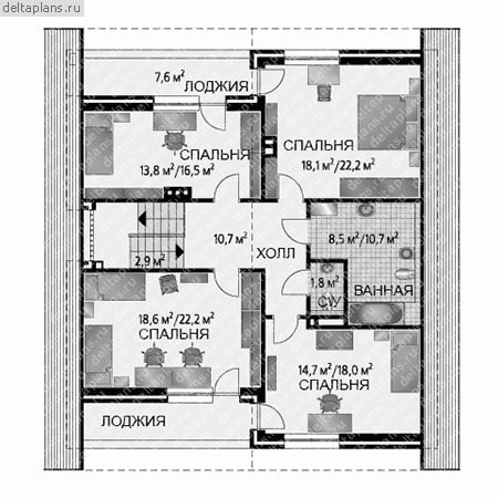 4 спальн. · 2 санузл. · 2 этаж