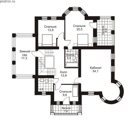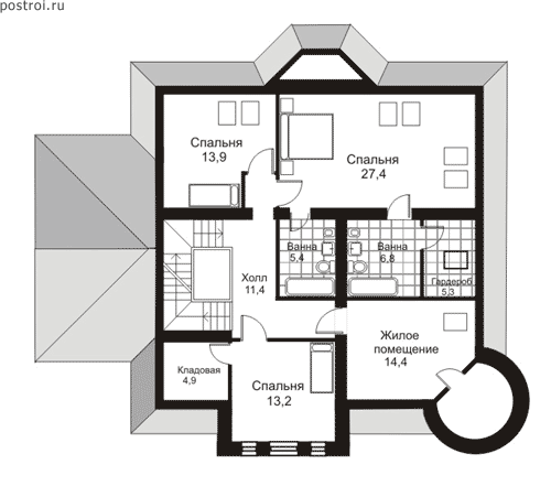 Дом из газобетонных блоков С-461 ГБ «Новый Рассвет»