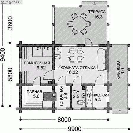 Проект одноэтажного дома "Сатурн" из бруса