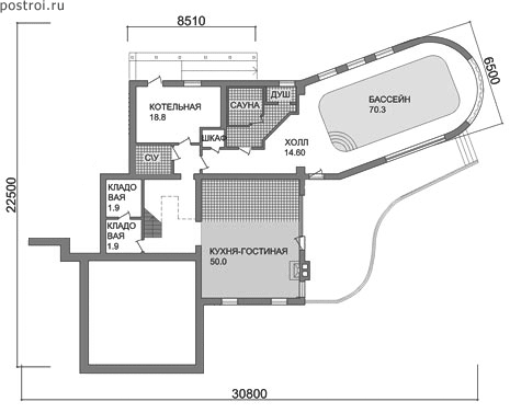 Проект одноэтажного коттеджа "Черкизово" из газобетона