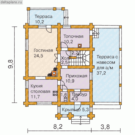 Проект двухэтажного дома "Уголок-М3" из бруса